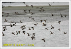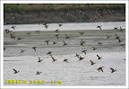 來到華江雁鴨公園的賞鳥平台,因為行前有參考潮汐表,到達時正好乾潮,依經驗應該是成群小水鴨接近岸邊覓食才對,沒想到整片空曠地竟然沒有一隻小水鴨,但卻換了主角,為數不少的小環頸鴴間雜著少數的磯鷸和鷹斑鷸,換個新鮮這倒也不錯,在此拍個過癮。